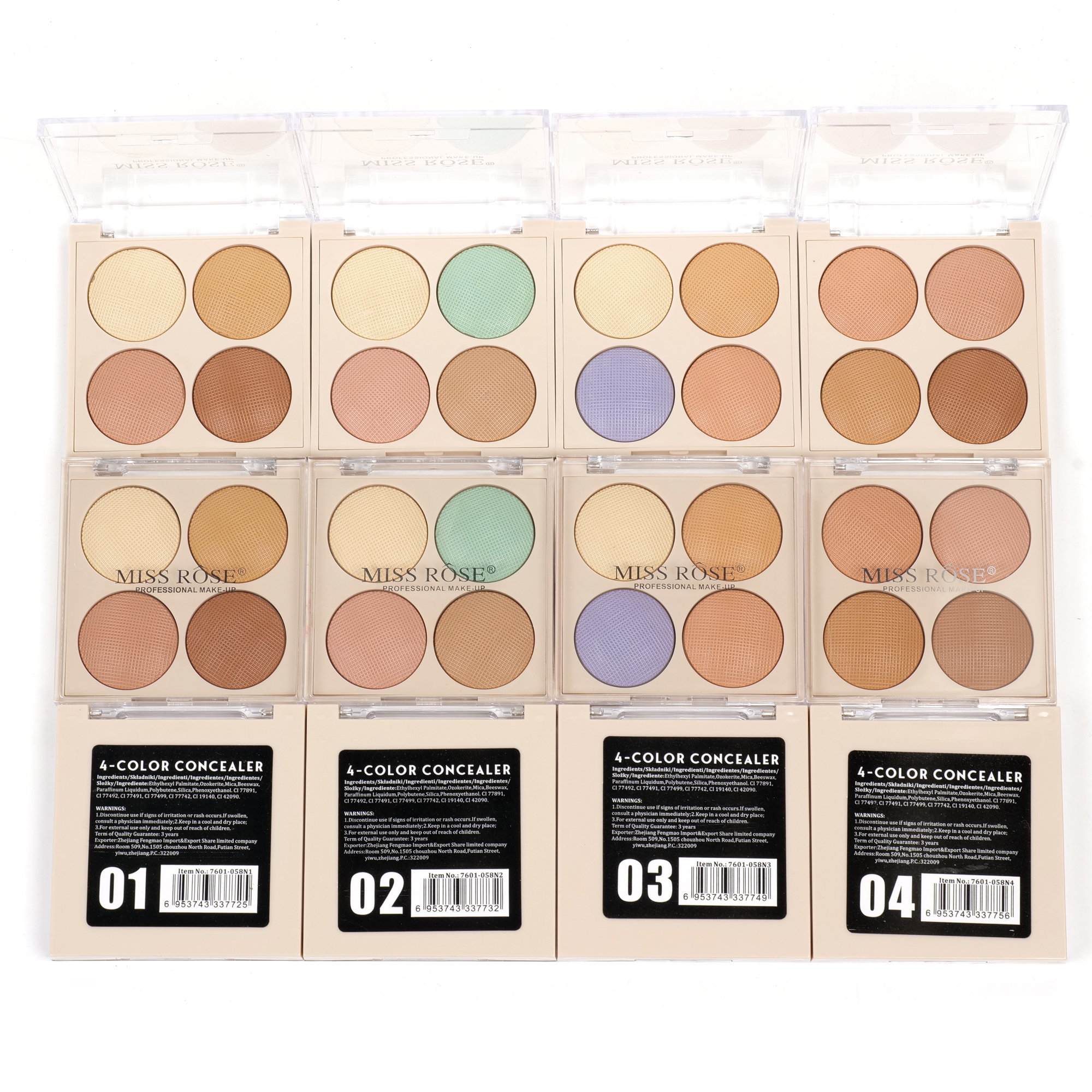7601-058Z1, 4-color concealer kit display box package