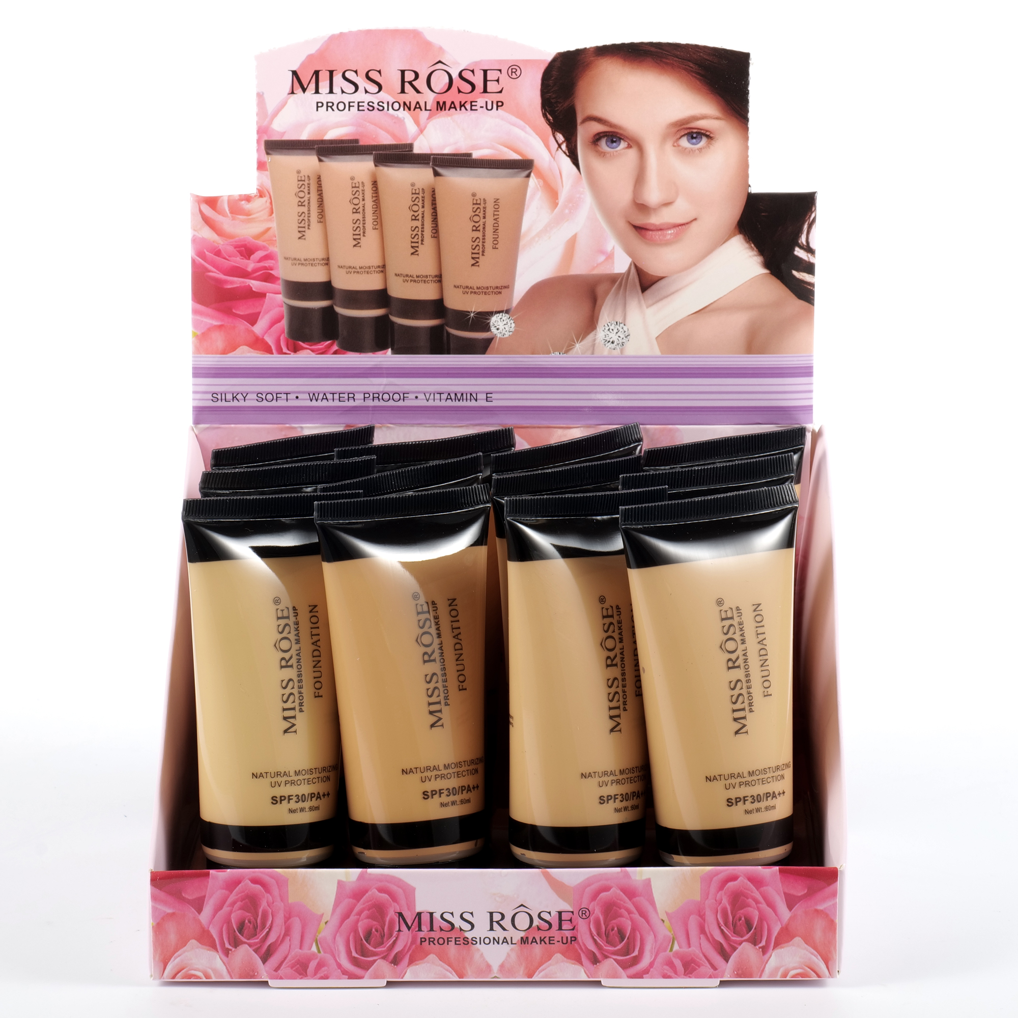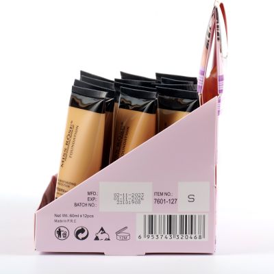 7601-127S large transparent tube with black cap, 4-color liquid foundation of 12ps in a display box