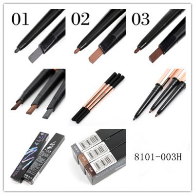 8101-003H1 Rose gold double-end eyebrow pencil, one triangular eyebrow pencil and one super thin eyebrow pencil of single package,color No.1 Boxed gray