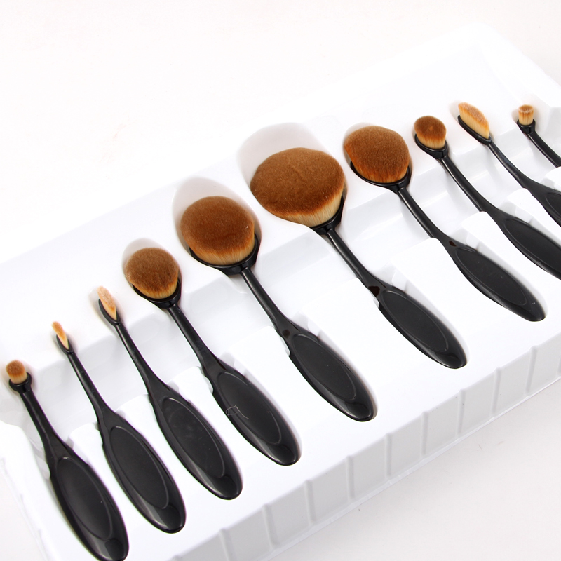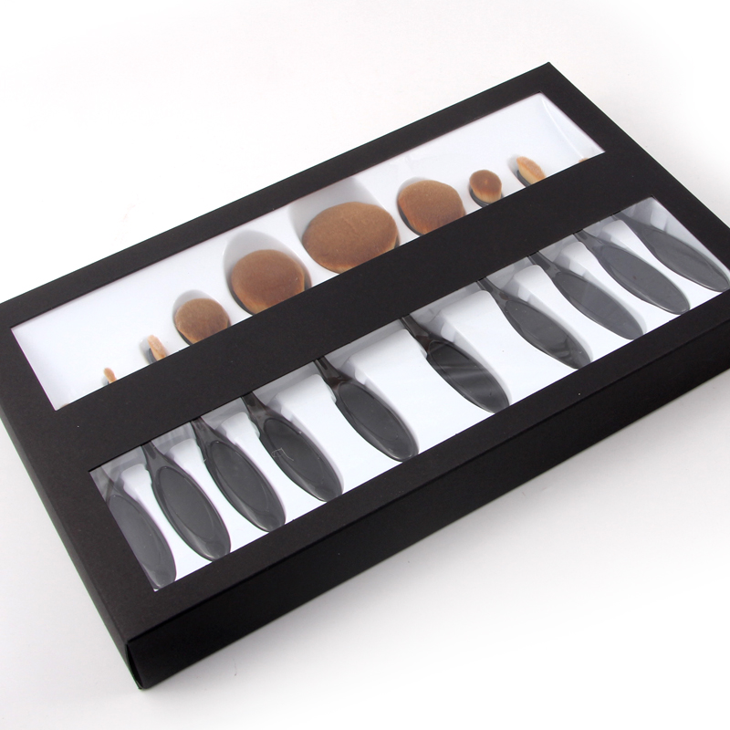 7201-191M عشر فراشي أسنان ، فرشاة كريم الأساس ، مقبض أسود ، شعر بني ، عبوة بليستر