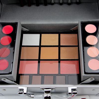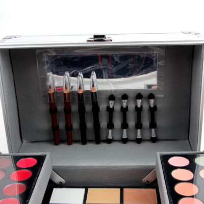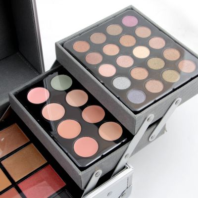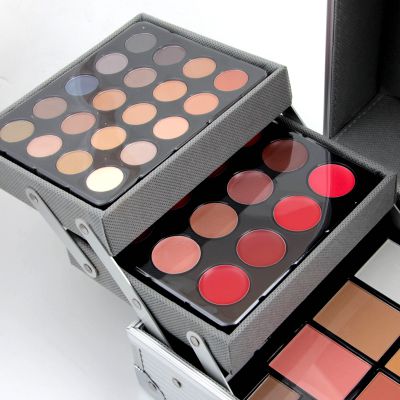 7007-002N1 皮革三层铝制化妆盒,南美颜色1号玫瑰红