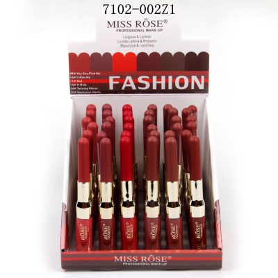 7102-002Z1 双头唇笔,一支唇彩和一支唇线笔,管子颜色与内部材质相同,在展示盒中混合36种6种颜色