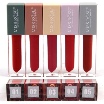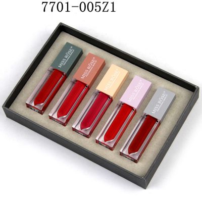 7701-005Z1 带有Morandi色帽的方形透明管,小套装盒中的5色唇彩