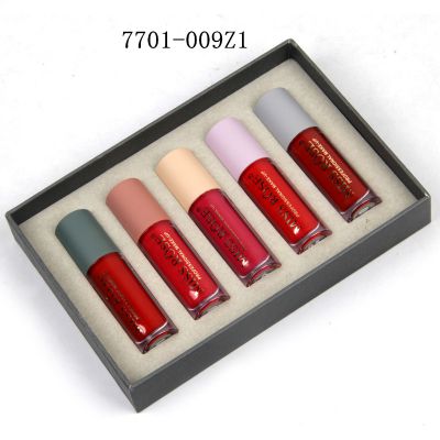 7701-009Z1 带有morandi色帽的透明瓶,5色唇彩装在一个小盒子里