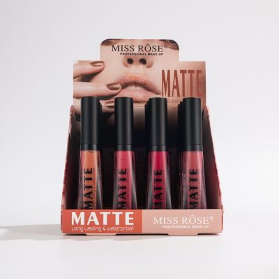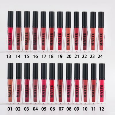 7701-024S 带闪亮黑帽的三角扁管,展示盒中24种颜色的金属唇彩24ps