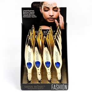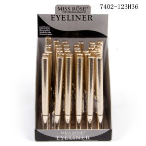 7402-123H36 带有小雨滴的金色铝管,丝印黑色徽标,展示盒中36ps的眼线笔