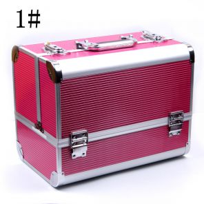 7007-006N1 皮革四层铝制化妆盒,No.1玫红色
