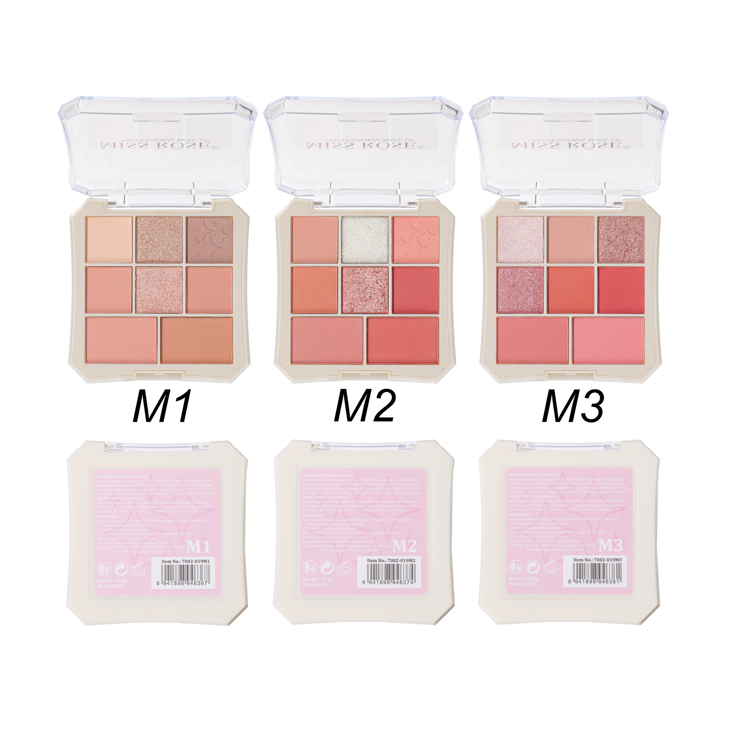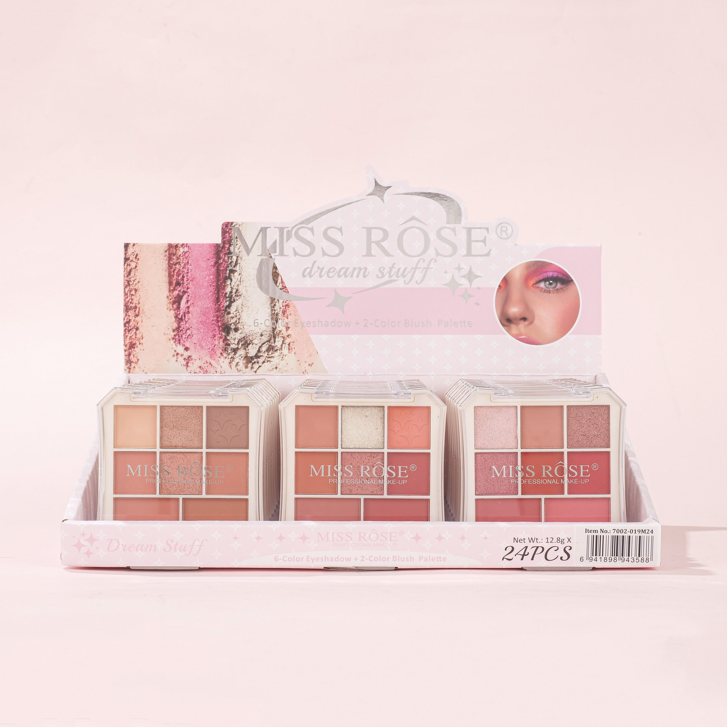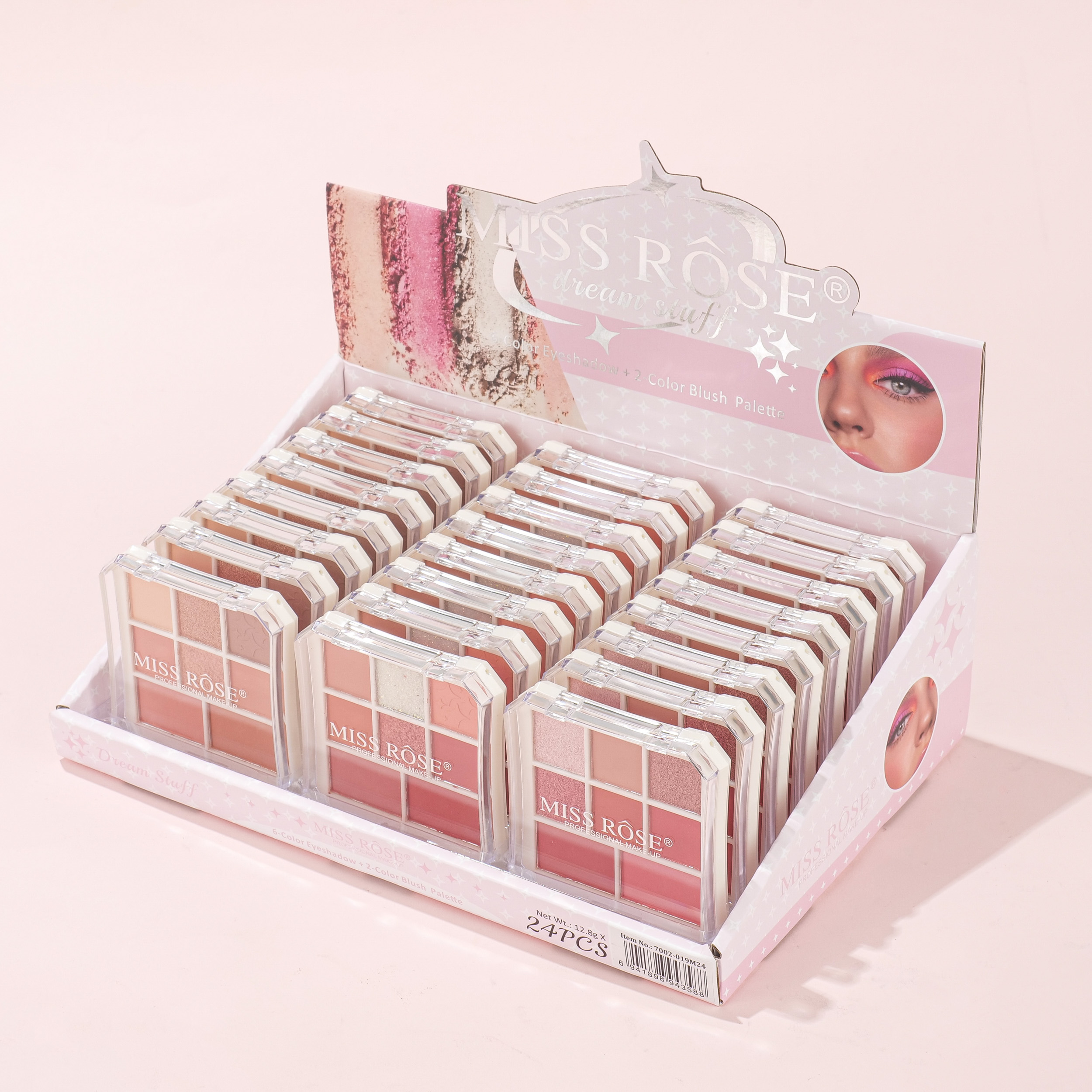 7002-019M24 make up kit for 6 color eyeshadow 2 color blush display box