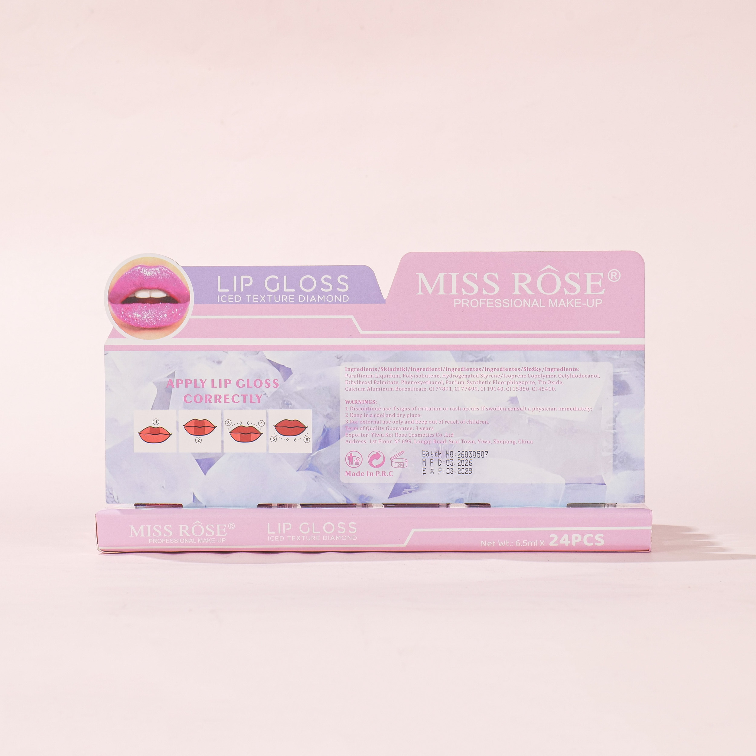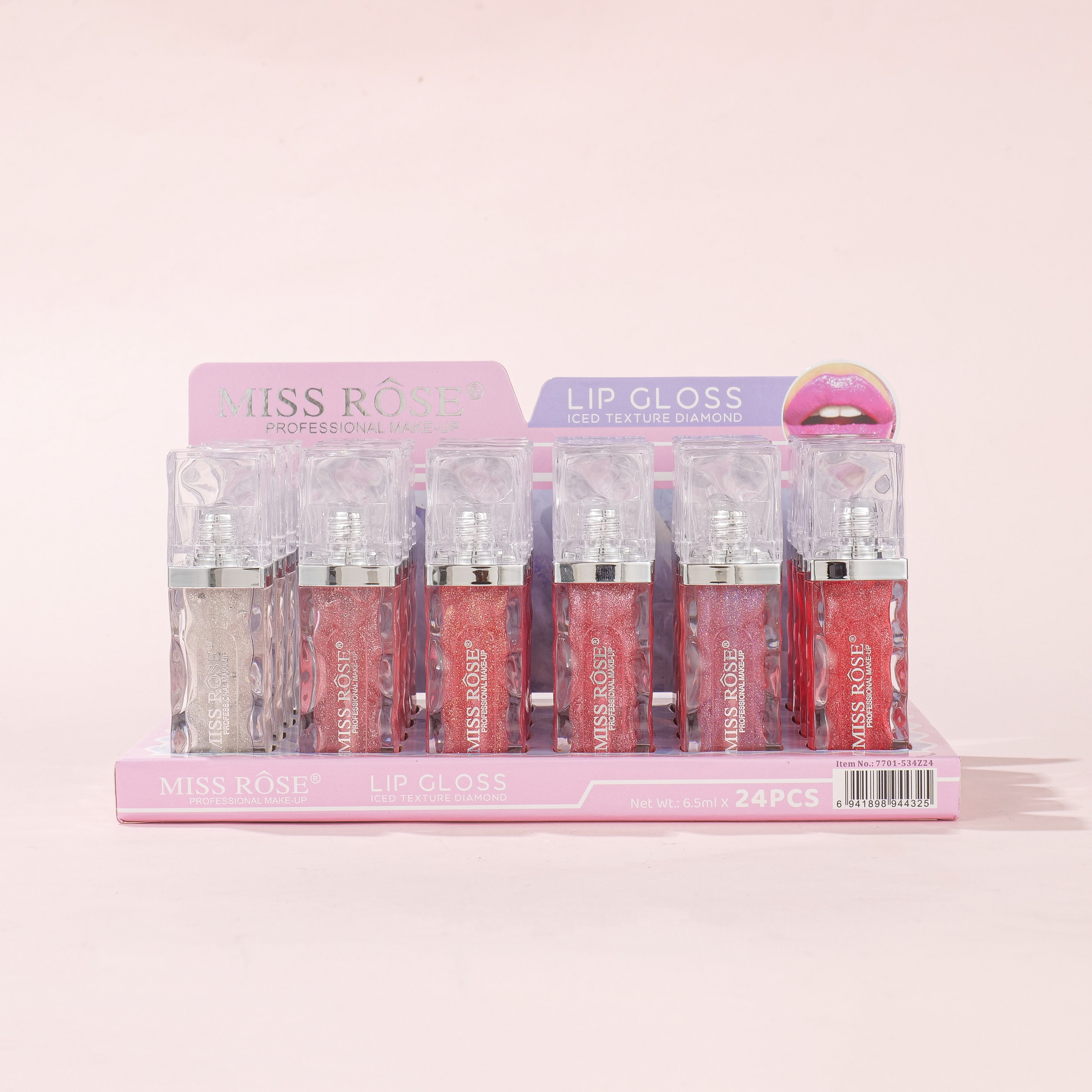 7701-534Z24 shinny lip gloss 6color sets, 24 pcs in display boxes